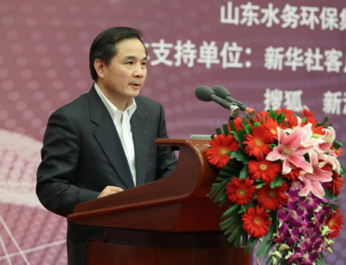 山東水務環(huán)保集團董事長曲延華作污水處理技術報告。