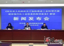 3月20日,河北省政府新聞辦召開新聞發(fā)布會(huì),對(duì)《河北省人民政府關(guān)于加快推進(jìn)工業(yè)轉(zhuǎn)型升級(jí)建設(shè)現(xiàn)代化工業(yè)體系的指導(dǎo)意見》進(jìn)行解讀。圖為發(fā)布會(huì)現(xiàn)場(chǎng)。記者杜昱輝攝 河北新聞網(wǎng)3月20日訊