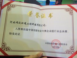 第四屆中國創(chuàng)新創(chuàng)業(yè)大賽新能源及節(jié)能環(huán)保行業(yè)總決賽在西安落下帷幕,邯鄲高科在孵企業(yè)河北唯沃環(huán)境工程科技有限公司以河北分賽區(qū)第二名參加了總決賽,晉級(jí)總決賽優(yōu)秀獎(jiǎng),并獲得了現(xiàn)